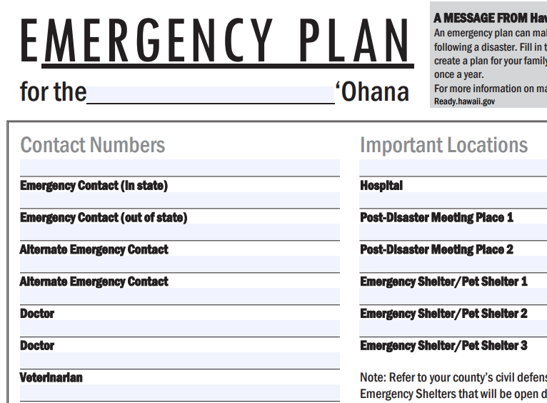 Use HIEMA’s family emergency plan to make sure you have all of these things addressed. You can find even more family planning resources at www.ready.gov/plan and check out the tools below.