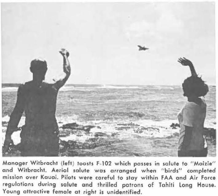 Turning to Anderson, the good-natured Witbracht said, “This is the greatest story I have ever heard. But tell your pilots that Maizie is a him. The real Maizie is over there,” pointing to another tiki.
