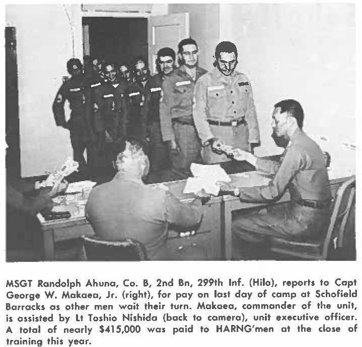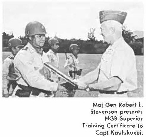 I am indeed proud and appreciative that this twentieth anniversary was marked by a highly successful field training period on the part of you Guardsmen. As was expected, we made a few mistakes but these will serve as guides to improve our military proficiency. The enthusiasm demonstrated by our Guardsman both at Pohakuloa and at Schofield Barracks was truly inspiring and commendable. I wish to extend mv personal appreciation to each of you for a job well done. Your performance was in keeping with the best tradition and spirit of the Hawaii Army National Guard. I ask that you continue with your good work in the year ahead.