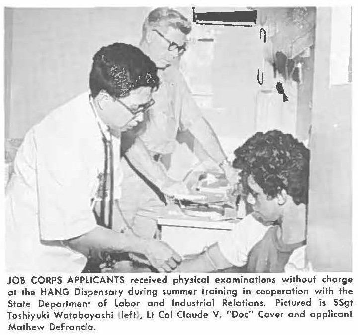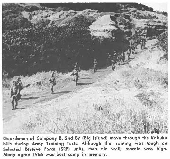 This training was designed to develop the individual into a jungle fighting and instill confidence in him to survive while traversing the jungle, using the natural environment to construct shelters and secure food. At the completion of field traIning 1963, the HARNG earned the distinction of being the only JUNGLE TRAINED reserve component in the nation.