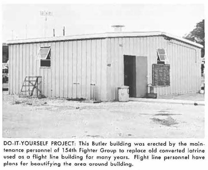 The 154th Ftr Gp has exciting if not hectic plans in the mill for their field training from 12 to 26 June. Elements of the 154th may be training at Bonham ALF, Barking Sands, Kauai, Dillingham AFB, Mokuleia and at Hickam. At the same time the unit will be busy with an aircraft modification program.