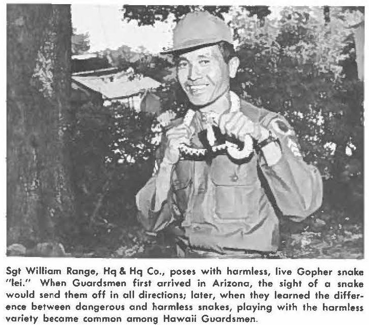 Certain National Guard units throughout the United States were selected to participate in Guardlift 1. The Hawaii Army National Guard, invited to participate, selected the 1st Battalion of the 299th Infantry to exchange places with the 1st Battalion of the 185th Infantry of the California National Guard. Lt Col Archie Kennison, Jr. and his 1st Battalion, augmented b y elements of the 3rd Battalion and Special Troops, spent their Field Training at Camp Roberts, California. The different climatic condition and rolling terrain offered new training experiences. On the other hand, the California Battalion participated in Phase I and Phase II of Jungle Warfare and Code of Conduct to fill out their field training requirements.