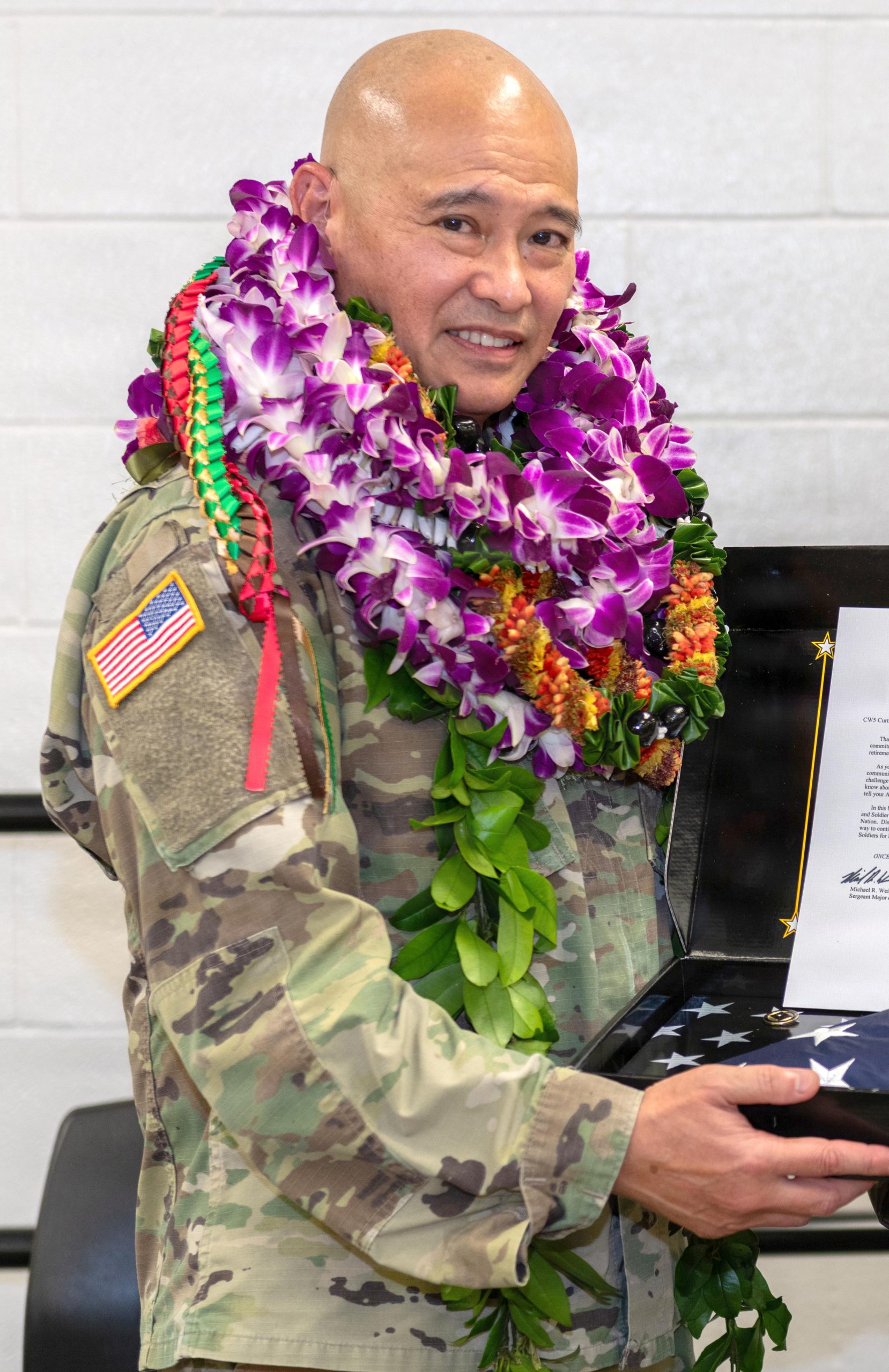 Chief Warrant Officer 5 Curtis Hiyane retired from the Hawai‘i Army National Guard on Jan. 10, 2025. He was the commander of the 111th Army Band for 28 years. See story: 111th Army Band Chief Curtis Hiyane retires on a high note