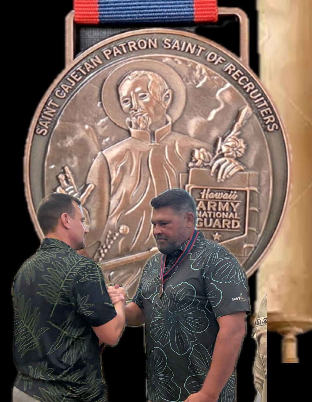 Saint Cajetan was active during the Renaissance period and was known as the patron saint of the unemployed, gamblers, the lowly document handlers and lastly, for good fortune. Just as Saint Cajetan focused on restoring strength and stability, recruiters work every day to sustain and strengthen the Hawaiʻi Army National Guard through the people they enlist.