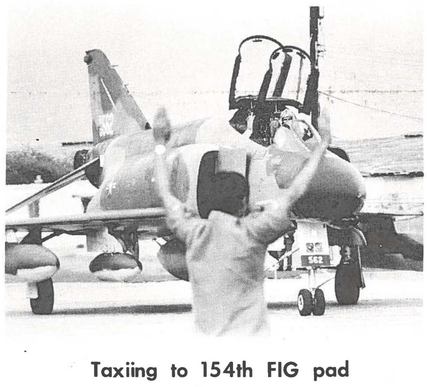 The 154th Ftr Gp (AD) will be operating their F-102A Delta Daggers out of the new 2.6 million dollar Fort Kam Facility for the first time. To obtain maximum training benefits during field training, 199th Weather Flight personnel will spend much of their time cross training with their active duty counterpart, Detachment 3, 1st Weather Wing and the Honolulu Weather Bureau. At these places, members will learn the finer points of their jobs as the 199th Weather Flight does not have qualified instructors nor the expensive weather equipment facilities to provide this highly technical training.