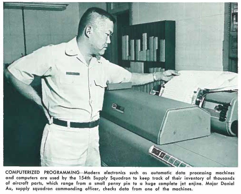 OCT 1964 The 154th Fighter Group was presented the Base Commander’s Trophy and the Unit Award for its continuing efforts in guarding against fire losses and its initiative in promoting and maintaining an effective fire prevention program.