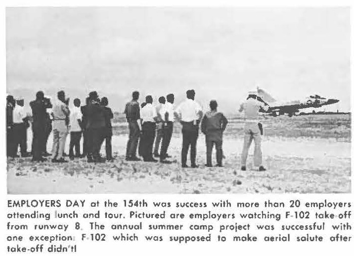16 JUN 1964 The 154th Fighter Group has been set aside during summer camp Employers’ Day, employers find out what their employees do during Air Guard training. The bosses took a look over the Hickam site, view static displays of aircraft and equipment, and watch demonstrations.
