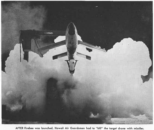 AFTER firebee was launched, Hawaii Air Guardsmen hod to “kill” the target drone with missiles. (Picture from the 1962 December The Hawaii Guardsman)