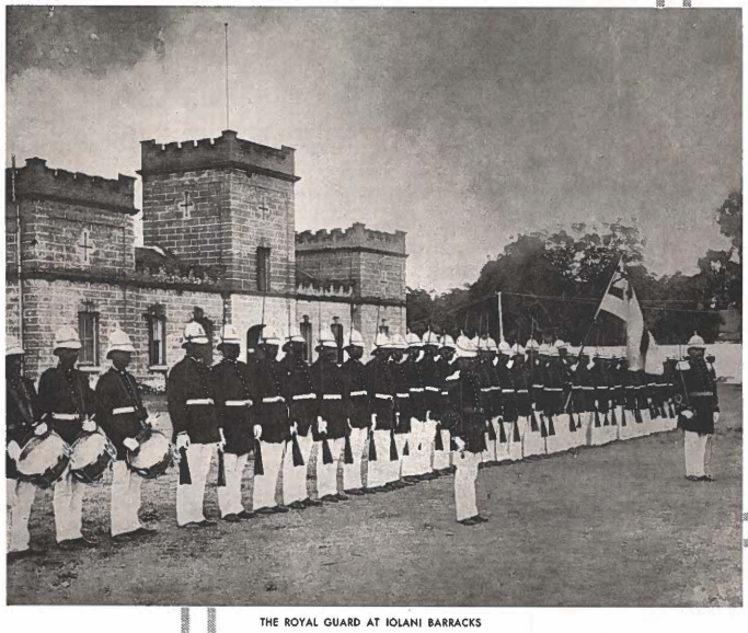 The original Royal Guard, stationed at Iolani Barracks, had 50 officers and men until their disbandment following the overthrow of the Hawaiian Kingdom, Jan. 17, 1893.