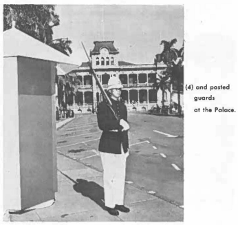 After the inspection, the guard marched to three of the gates at Iolani Palace and posted a guard at each.