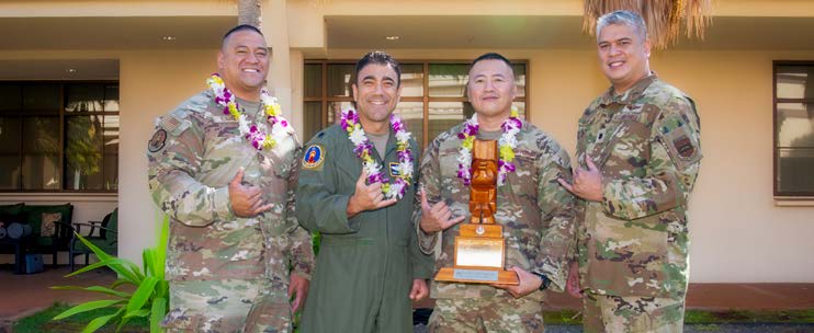 Winning Team of the Year 201st Combat Operations SquadronOutstanding Unit of the Year 199th Fighter SquadronKaleo Nui Award 154th Mission Support GroupService Team of the Year 154th Comptroller FlightNCO of the Year Part Time SSgt Philip Elisara 201st Combat Operations SquadronSNCO of the Year Full Time MSgt Randy Ferriman 201st Intelligence SquadronSNCO of the Year Part Time SMSgt Bles May Daog 199th Fighter SquadronFGO of the Year Part Time Lt Col Chuck Gomes 201st Combat Operations SquadronFirst Sergeant of the Year MSgt Kevin Needham 154th Medical GroupCGO of the Year Full Time Capt Chase Hazlewood 154th Maintenance SquadronCGO of the Year Part Time Capt James Ro 154th Communications SquadronFGO of the Year Full Time Maj Gordon Kai 169th Air Defense SquadronAirman of the Year Full Time SrA Albert Insisiengmay 201st Combat Operations SquadronAirman of the Year Part Time SrA Cathleen Drake 154th Civil Engineer SquadronNCO of the Year Full Time SSgt Savannah Bise 201st Intelligence Squadron(Pictures from the 2025 April Kūkāʻilimoku)