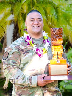 Outstanding HANG Airman Award – Arnn Napua N. Sugai, 150th Aircraft Control and Warning Squadron, was presented this wooden tiki as the outstanding airman/ senior airman who best exemplifies the skills, attitude and personal attributes necessary for enhancing a successful career as a guardmember. He is also HANG’s nominee for the National Guard Bureau’s Outstanding Airman Program.