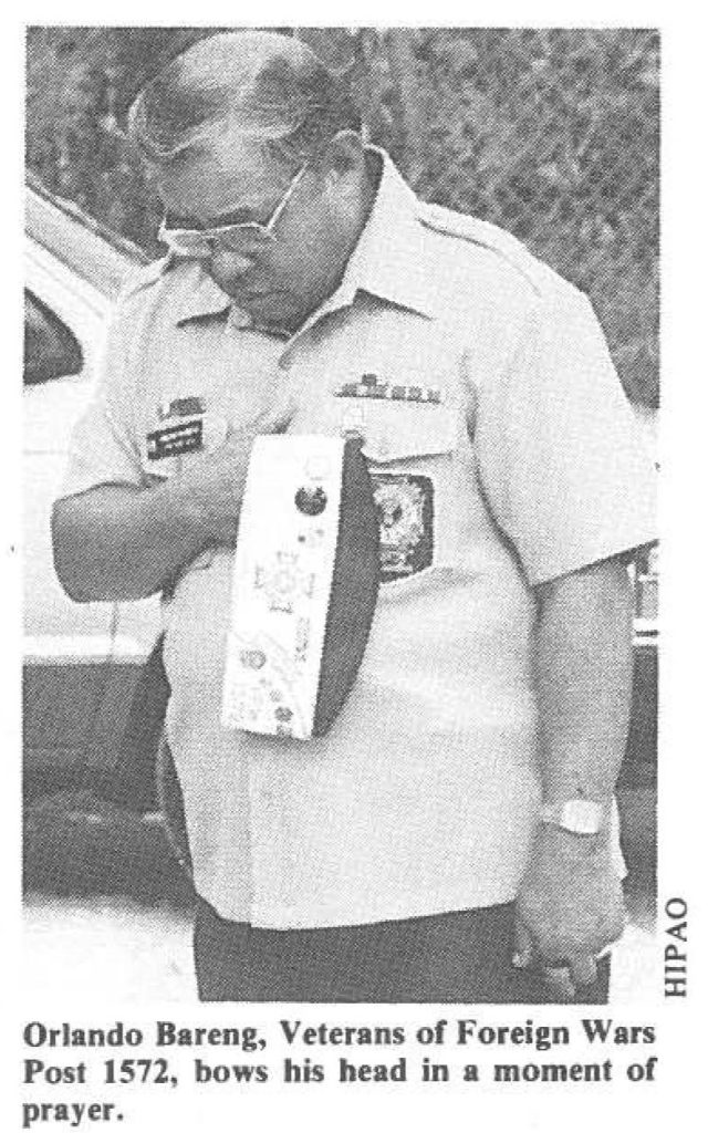 Orlando Bareng, Veterans of Foreign Wars Post 1572, bows his head in a moment of prayer. (Pictures from the 1989 July – September Pūpūkahi)