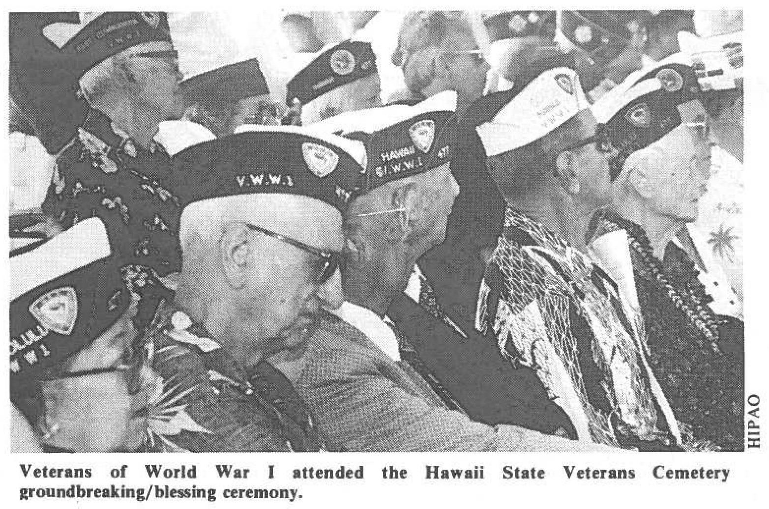 A primary focus throughout the year was the Hawaii State Veterans Cemetery. On Sept. 15, 1989, a groundbreaking ceremony was held at the site in Kaneohe.