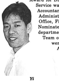 The 2000 recipient of the Adjutant General’s Award for Distinguished State Service was Jacob J.Y. Yi, Accountant IV in the Administrative Services Office, Fiscal section. Nominated from the department for the Governor’s Team of the Year Award were members of the Army Engineering Environmental Office.