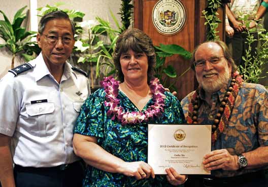 The 2008 recipient of the Adjutant General’s Award for Manager of the Year was Delores “Dee” M. Cook, a civil defense terrorism planner. The Distinguished State Service award was earned by Anson M. Kimura, an emergency preparedness and response planner for State Civil Defense.