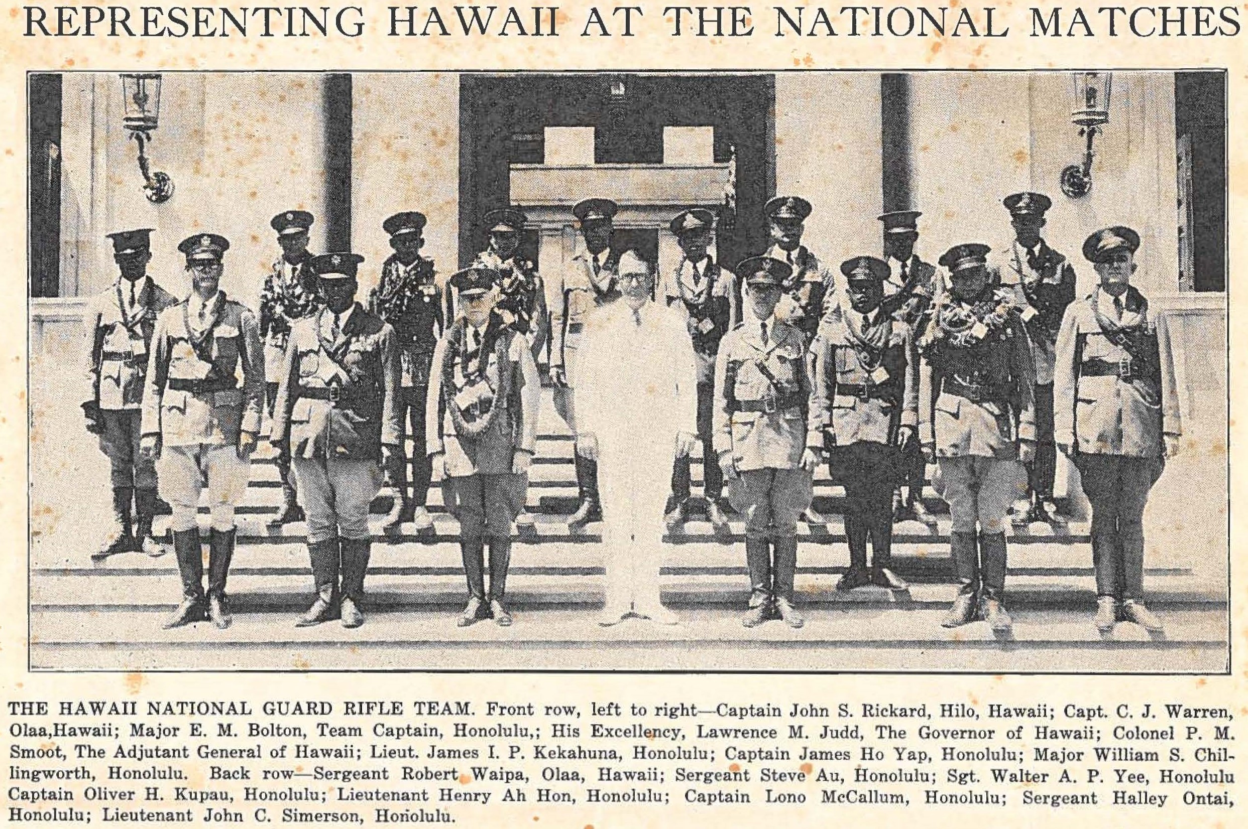 His military service included being a private in the Queen’s Own Volunteer Battalion and later a member of the National Guard of Hawaiʻi from Jun. 1, 1918 to Jul. 16, 1919. He was commissioned a second lieutenant of infantry Sept. 13, 1918.