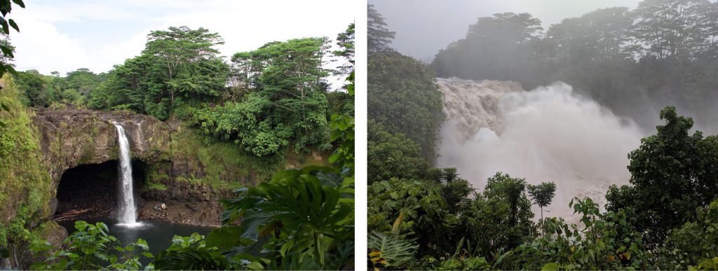 Hawaiʻi’s natural environment is conducive to flash flooding. Storm fronts and trade winds come in contact with Hawaiʻi’s tall mountains, pushing the air upward, where it cools and forms clouds and rain. This precipitation gathers in streams and rivulets as it falls down the mountains, causing flash flooding when storms drop a lot of rain.
