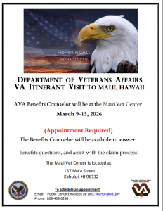 - VA Benefits Visit to Maui, March 9-13, 2026